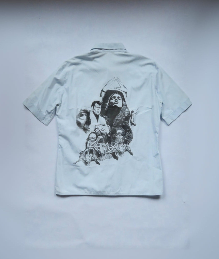 This Raf Simons’ Spring/Summer 2004 Button Up from the season “May The Circle Be Unbroken” features the iconic Siddhartha graphic on the back, inspired by Hermann Hesse’s novel and its themes of spiritual journey and self-discovery. This rare button-up combines a clean, tailored silhouette with a striking back print that merges Eastern-influenced symbolism and nature motifs, characteristic of the collection’s contemplative, almost meditative mood. A true archival piece, it captures Raf Simons’ early 2000s experimentation with graphic storytelling and makes a standout addition to any curated wardrobe.