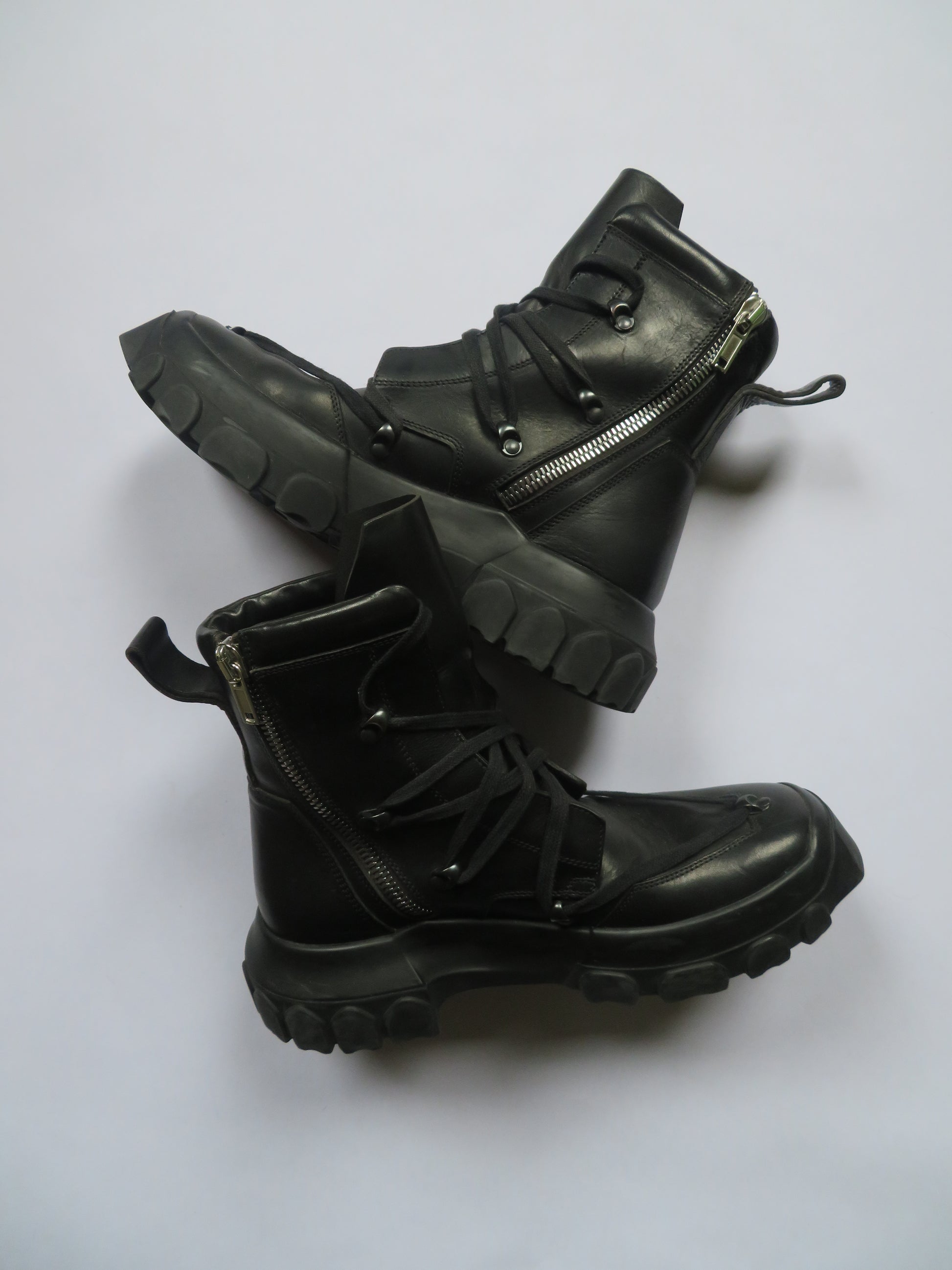 Featuring the infamous Hexagram lacing system and Bozo sole, this pair of boots comes in a mint condition and is optimal for elevating your outfits. A must have for any Rick Owens collector.