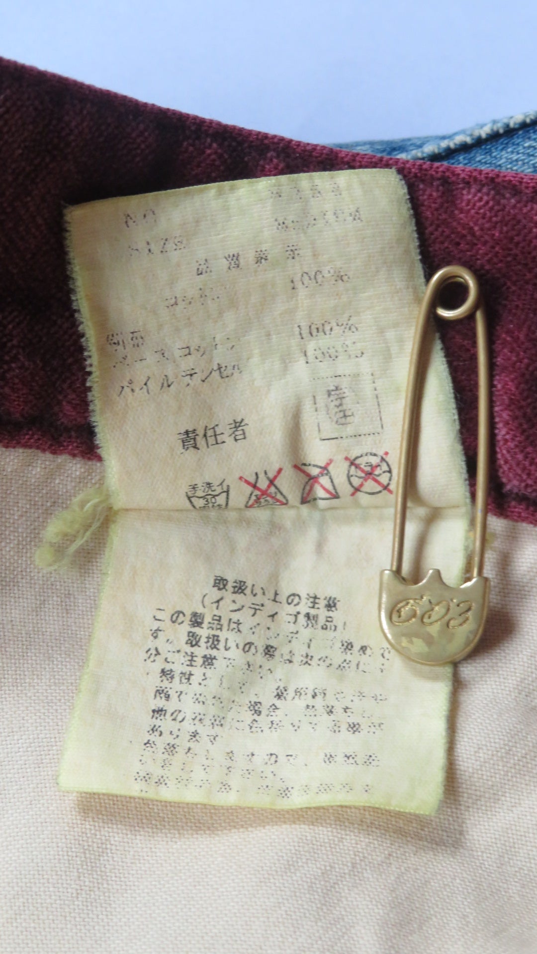 A distressed and elegant pair of denim from one of our favorite seasons of Undercover called "Witches Cell Division". The denim features a velour stripe on each side of the denim with distressing on both knees. Condition as seen on the pictures, has some small flaws like stains and distressing from the general wear throughout the denim, still in good shape for it's age.